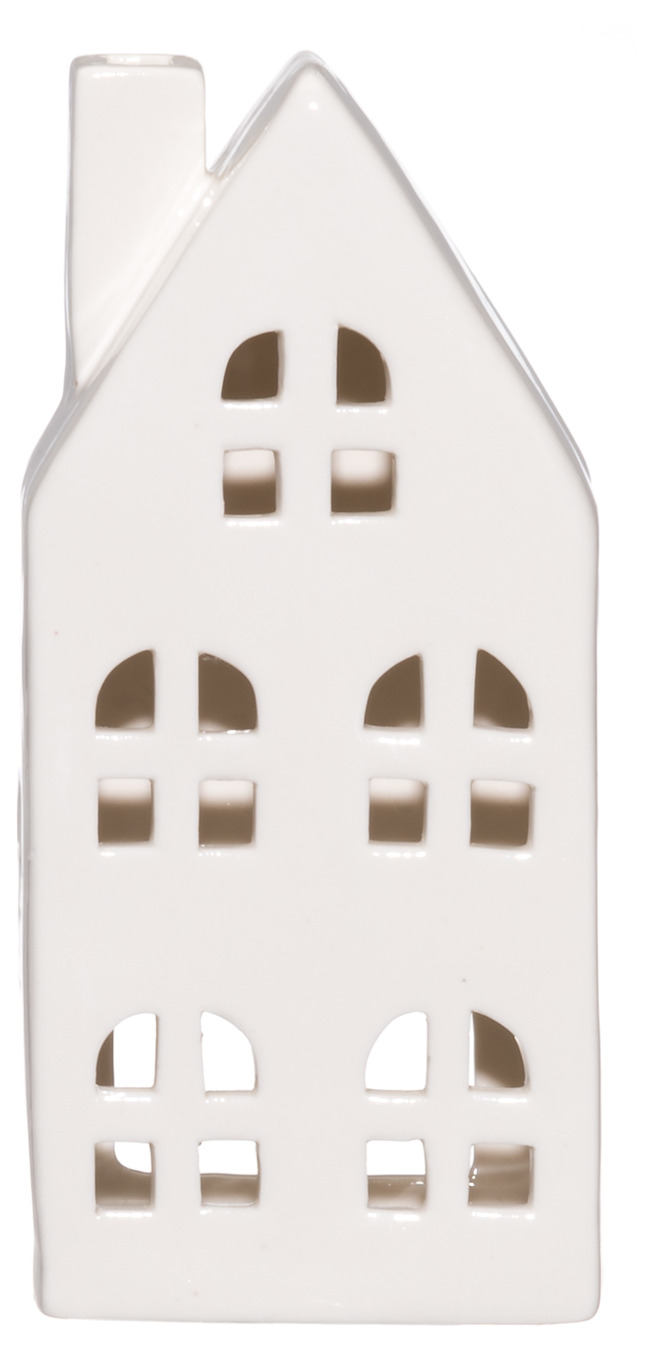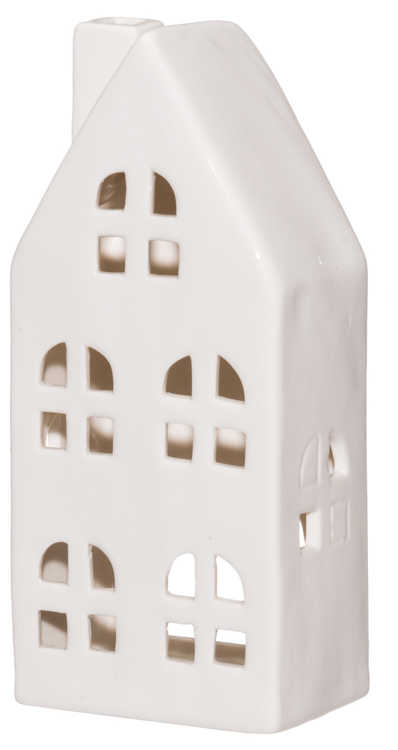 Skapa en mysig och stämningsfull känsla i hemmet med denna charmiga huslykta i porslin. Ljuset sprider sig vackert genom de små fönstren och ger ett varmt sken som påminner om ett levande hus i vinternatten.