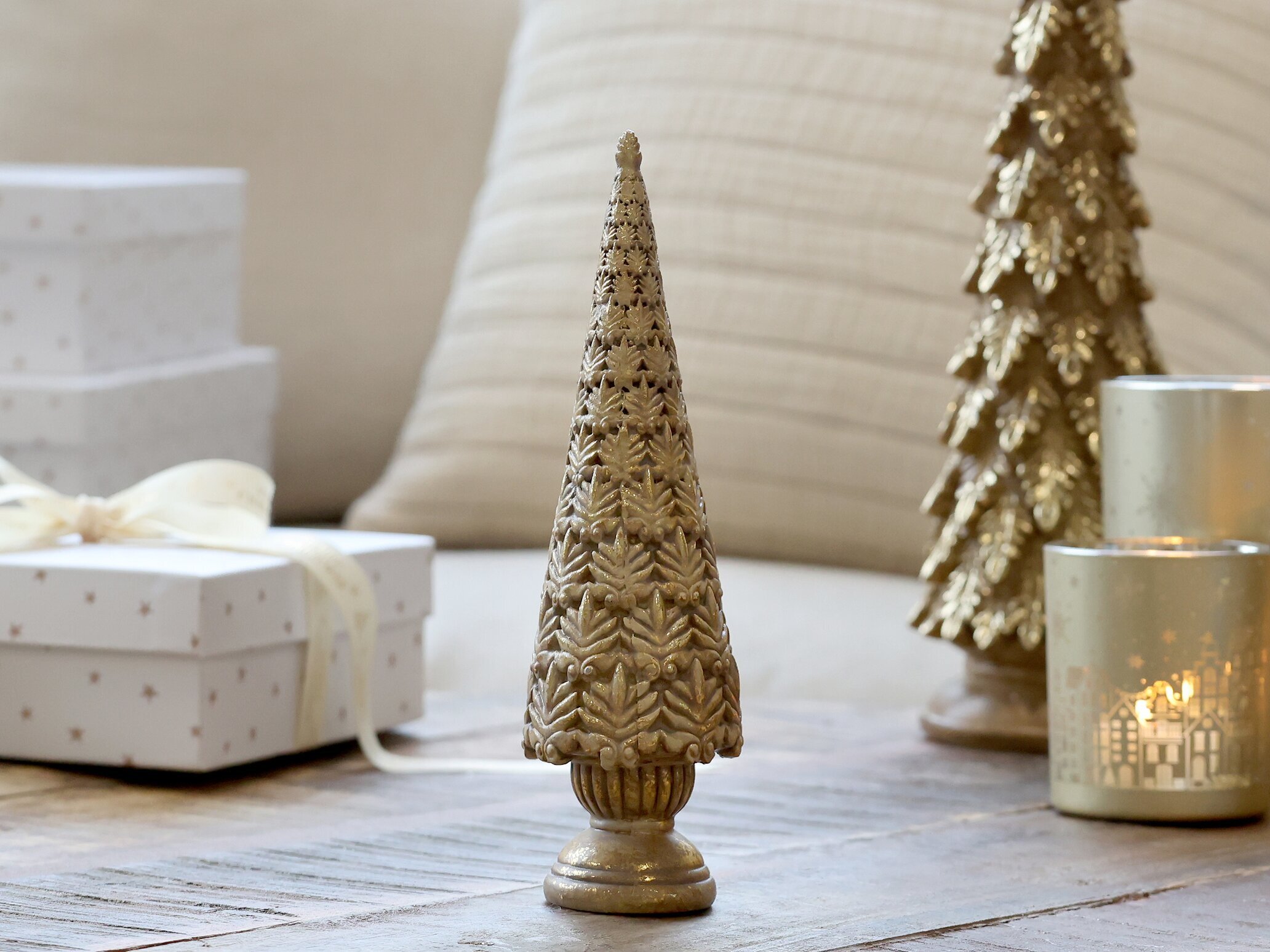En elegant julgran i gyllene ton med vackra detaljer, från Chic Antique. Läs mer