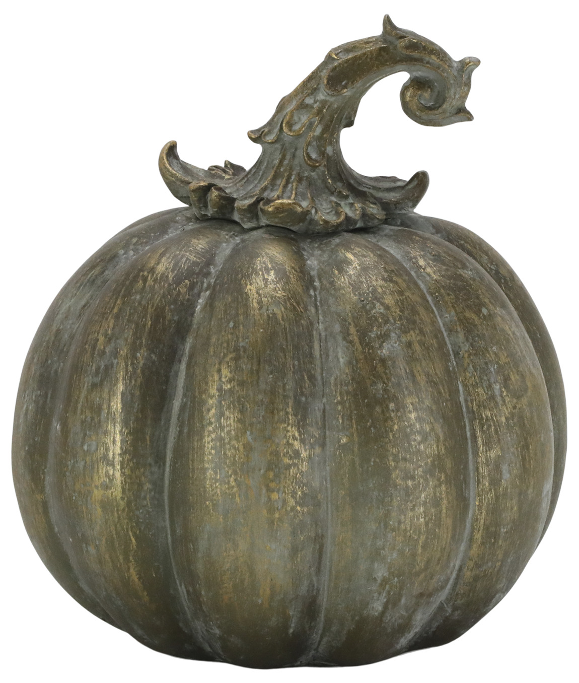 Skapa en stämningsfull och elegant känsla i ditt hem med denna vackra dekorationspumpa från Chic Antique. Den antika finishen och de gröna tonerna ger ett rustikt och charmigt uttryck, perfekt för både höst- och vinterdekorationer. Placera den ensam som ett blickfång eller kombinera flera i olika storlekar för en harmonisk och inbjudande miljö.
