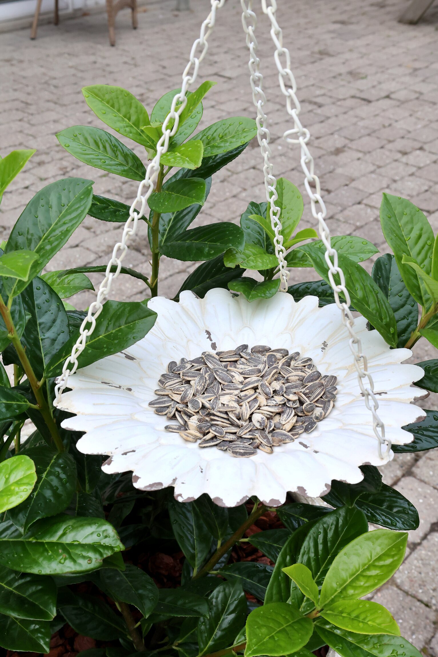 Låt trädgården blomma året om med detta dekorativa fågelbord i form av en blomma. Häng det i ett träd eller på altanen och bjud in småfåglarna till en stunds vila. Fyll det med frön när kylan kommer – eller med vatten under varma sommardagar. En vacker detalj som både pryder och gör gott.
