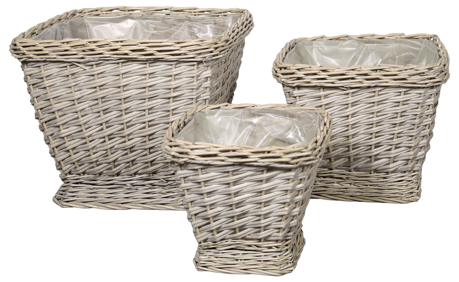 Krukorna säljs i set om 3 olika storlekar och är försedda med plastinnerhölje, vilket gör dem praktiska att använda tillsammans med växter. Den naturliga flätningen ger ett rustikt och stilrent uttryck som passar i många typer av inredning. Avsedda för inomhusbruk.