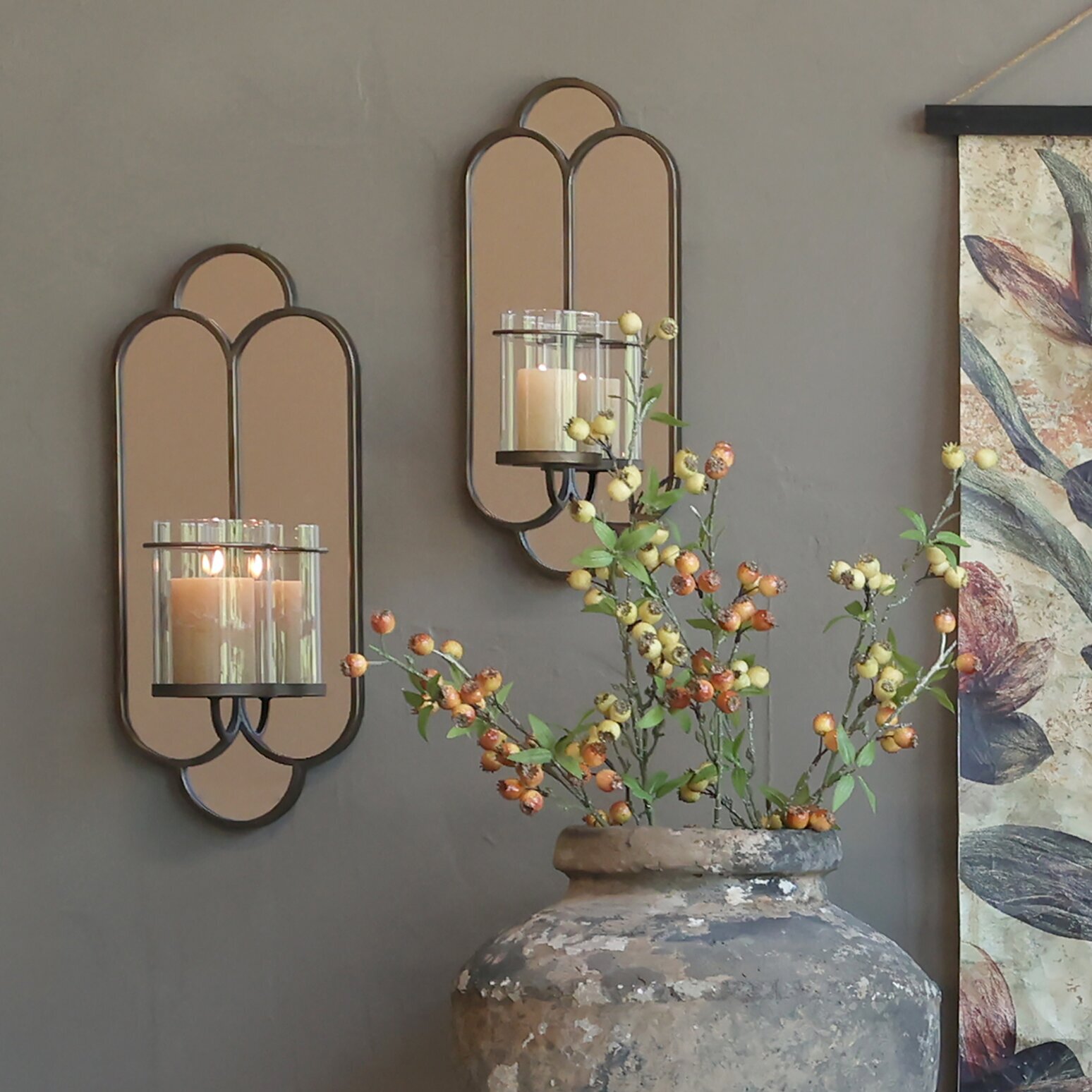 Ge ditt hem en touch av elegans med denna unika väggljusstake med glascylinder. Den vackra designen kombinerar en spegel som reflekterar ljuset och skapar en inbjudande atmosfär med en robust metallram för en tidlös look. Glascylindern erbjuder en säker plats för blockljus och framhäver lågan på ett stilrent sätt. Perfekt för att skapa stämning i vardagsrummet, sovrummet eller hallen. Låt denna ljusstake bli en elegant detalj som både lyser upp och dekorerar din vägg. Kombinera gärna två för en symmetrisk och sofistikerad stil.