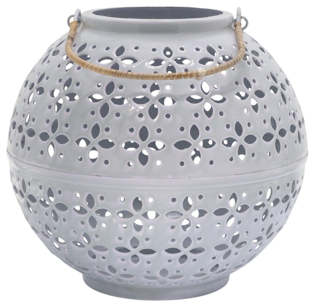 En stilren ljuslykta i emalj med dekorativa perforeringar som sprider ett mjukt och stämningsfullt ljus. Det praktiska handtaget gör den enkel att flytta och placera – perfekt för både bord, fönster eller uteplats.