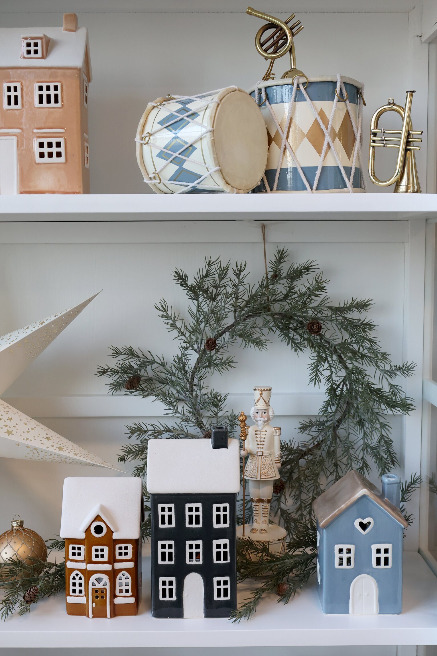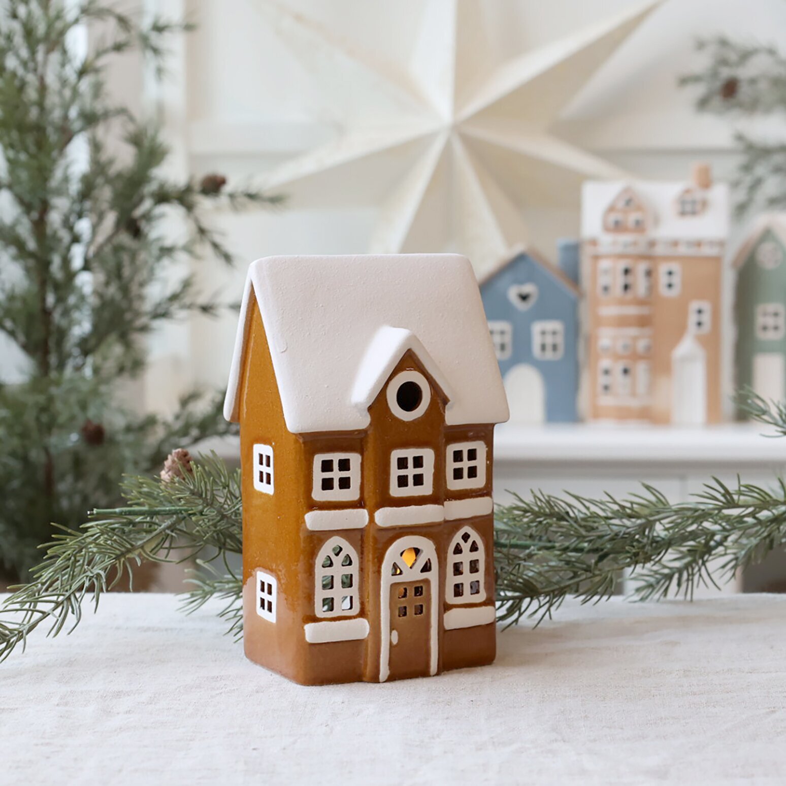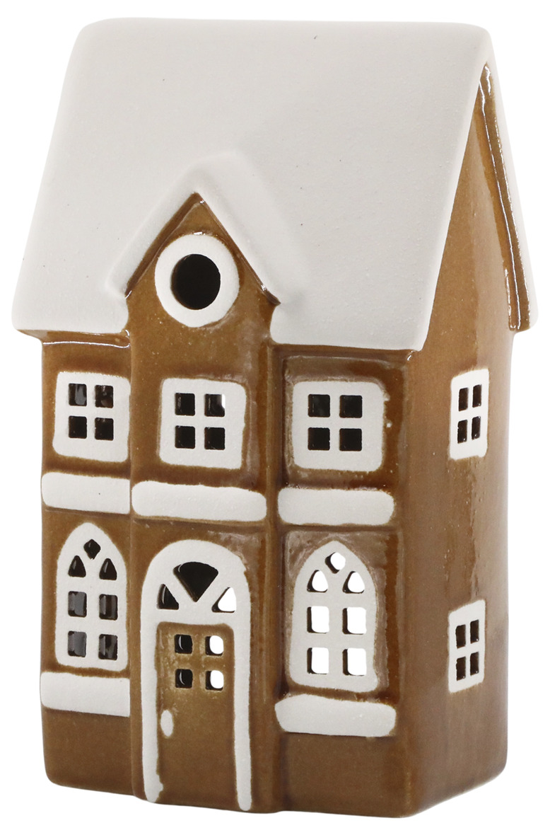 Skapa en mysig och stämningsfull känsla hemma med denna charmiga ljuslykta i form av ett hus. Med sin mjuka färg och snötäckta tak sprider den ett varmt sken när du placerar ett värmeljus inuti.