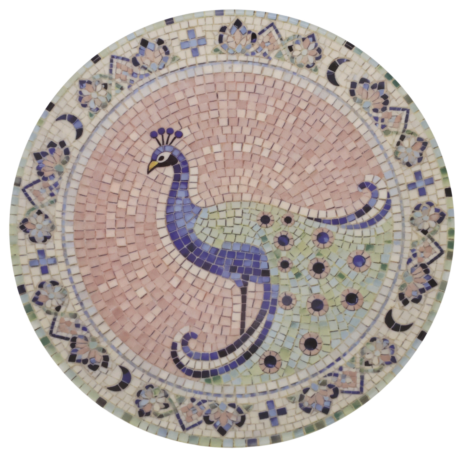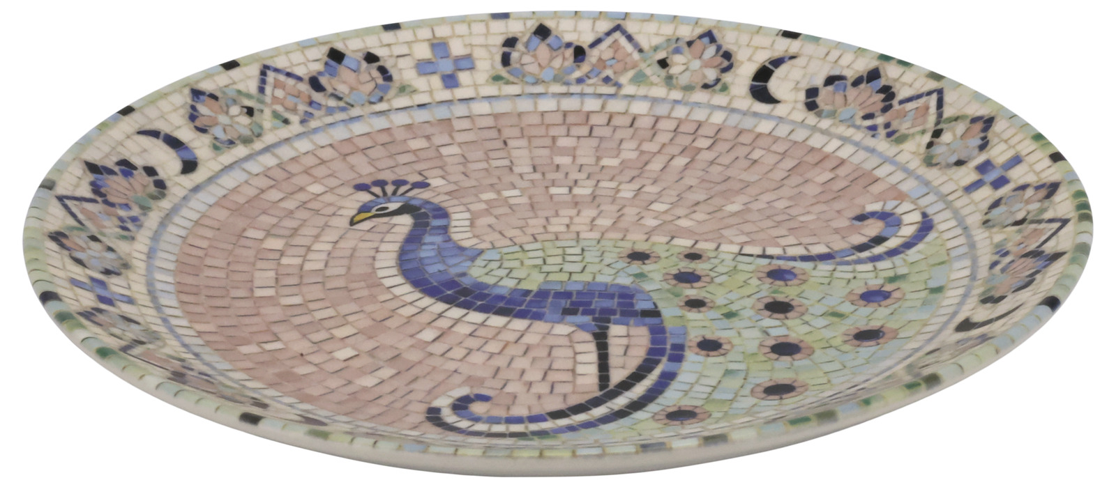 En vacker assiett i stengods med ett dekorativt mosaikmönster som ger en livfull och personlig känsla till dukningen. Den släta ytan gör den både praktisk och behaglig att använda, samtidigt som mönstret skapar ett fint blickfång på bordet.