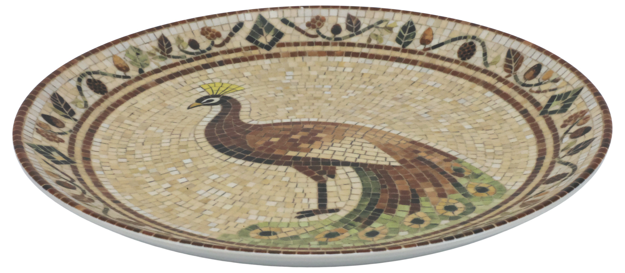 En vacker tallrik i stengods med ett dekorativt mosaikmönster som ger en livfull och personlig känsla till dukningen. Den släta ytan gör den både praktisk och behaglig att använda, samtidigt som mönstret skapar ett fint blickfång på bordet.