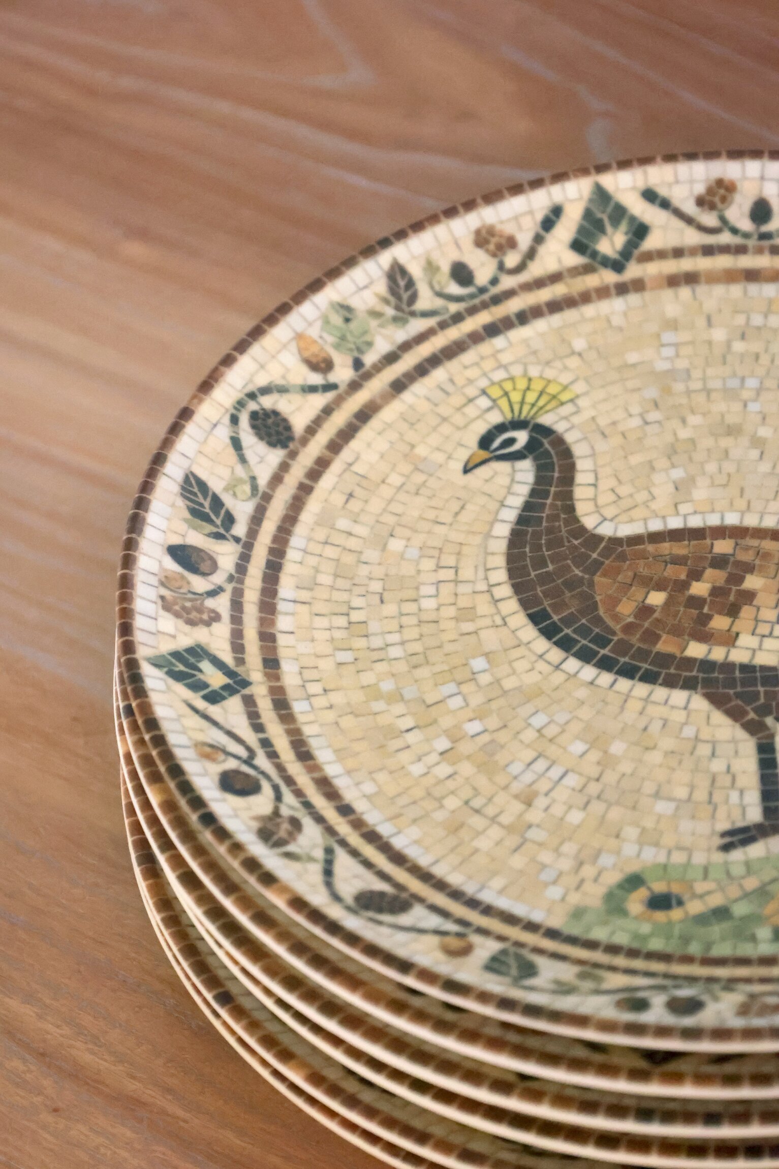 En vacker tallrik i stengods med ett dekorativt mosaikmönster som ger en livfull och personlig känsla till dukningen. Läs mer