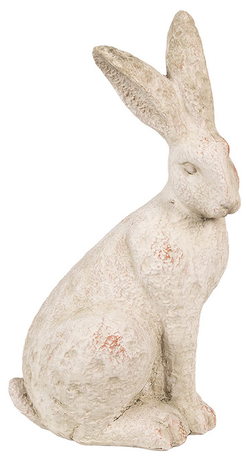 Dekorativ figurin med mjuka former och ett lugnt uttryck som passar fint i hemmet. Den ljusa, lätt patinerade ytan ger figuren en charmig och tidlös känsla som passar både till vårens dekorationer och som en fin inredningsdetalj året om.