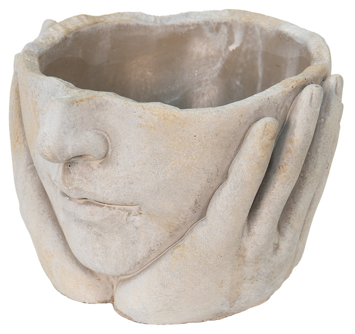 En charmig och dekorativ kruka som snabbt blir ett blickfång i hemmet. Den mjuka formen med ansikte och händer ger ett lugnt och personligt uttryck, samtidigt som den ljusa stenliknande finishen gör den enkel att matcha med olika inredningsstilar.