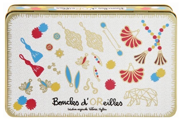 Förvara dina örhängen i denna vackra plåtburk med insats som håller smyckena på plats.