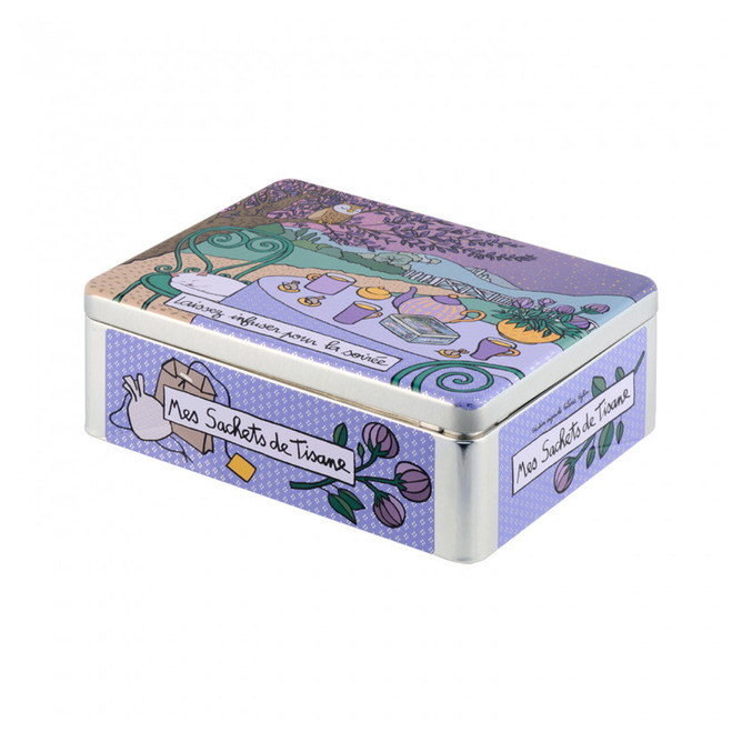En dekorativ plåtburk för praktisk förvaring av dina tepåsar. Läs mer