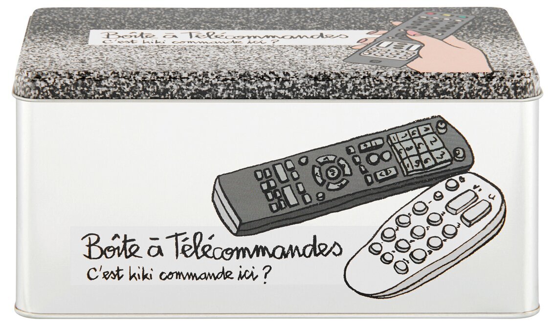 Praktisk plåtburk till förvaring utav alla slags fjärrkontroller.