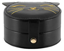 För dig som älskar smycken – och katter. Det här söta svarta smyckeskrinet med kattansikte och små öron passar perfekt till både hemma och resa.