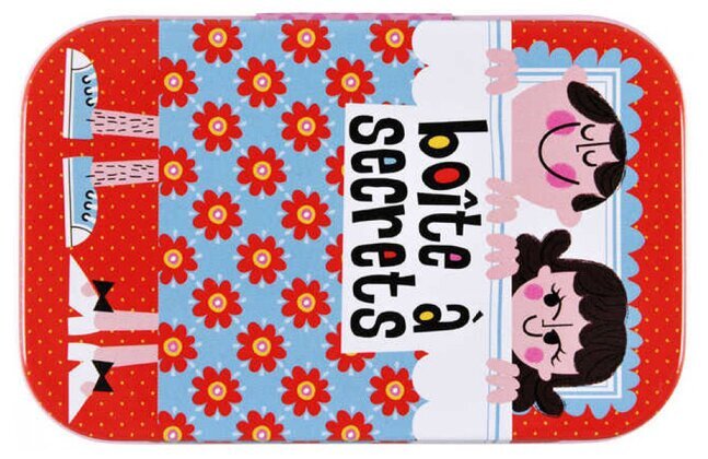 I denna lilla plåtburk med texten " hemliga lådan" kan du förvara det som du kanske inte vill ha liggandes framme synligt men ändå inom räckhåll.