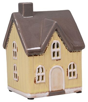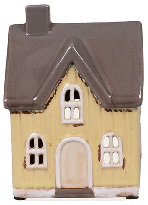 Detta söta lilla ljuslyktehus har en varm gul fasad, ett mjukt grått tak och charmiga, rundade fönster som ger det ett klassiskt och hemtrevligt uttryck. Den glaserade keramiken och de små detaljerna gör huset till en fin dekoration året runt.