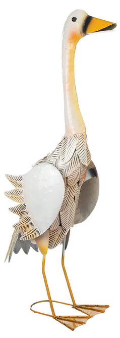 En ståtlig anka i metall som blir en dekorativ blickfångare i trädgården, på uteplatsen eller vid entrén. Med sin höga siluett, detaljrika fjädermönster och varma färgtoner skapar den en charmig och personlig känsla i utemiljön.