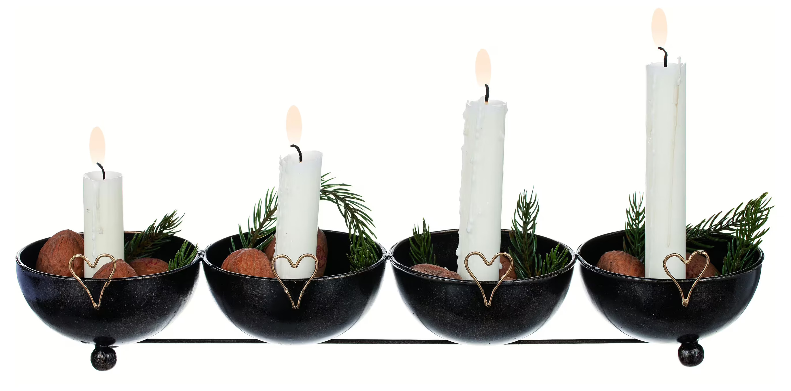 Adventsljusstake i hamrad plåt med plats för 4 stycken kronljus, fin att dekorera med mossa mm. Läs mer