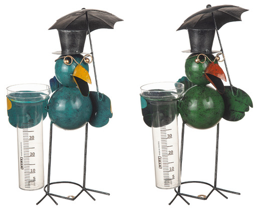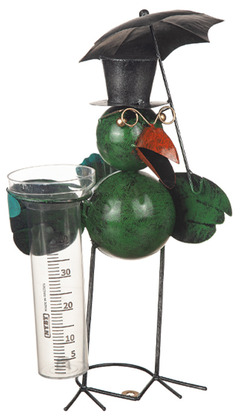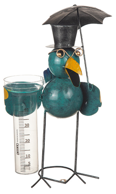 En lekfull regnmätare som kombinerar funktion med charmig design. Den färgglada fågeln med hög hatt, glasögon och paraply blir en rolig detalj i trädgården samtidigt som du enkelt kan se hur mycket regn som har fallit.