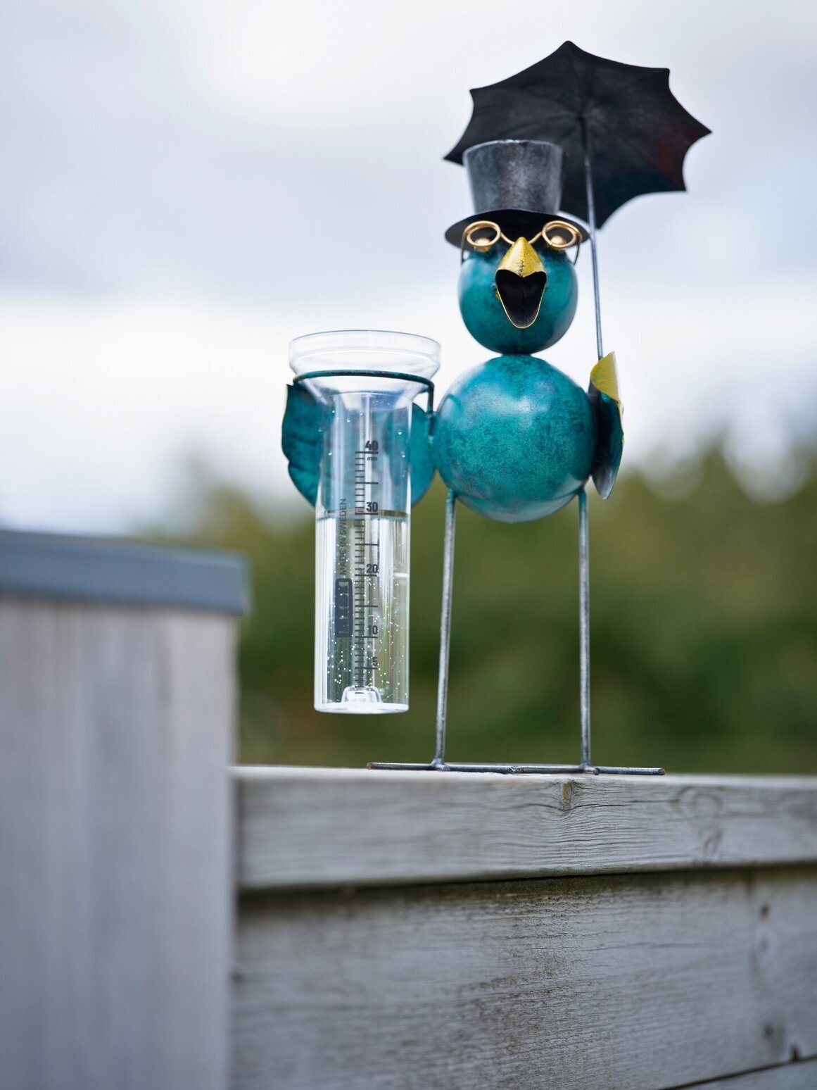 En lekfull regnmätare som kombinerar funktion med charmig design. Den färgglada fågeln med hög hatt, glasögon och paraply blir en rolig detalj i trädgården. Läs mer