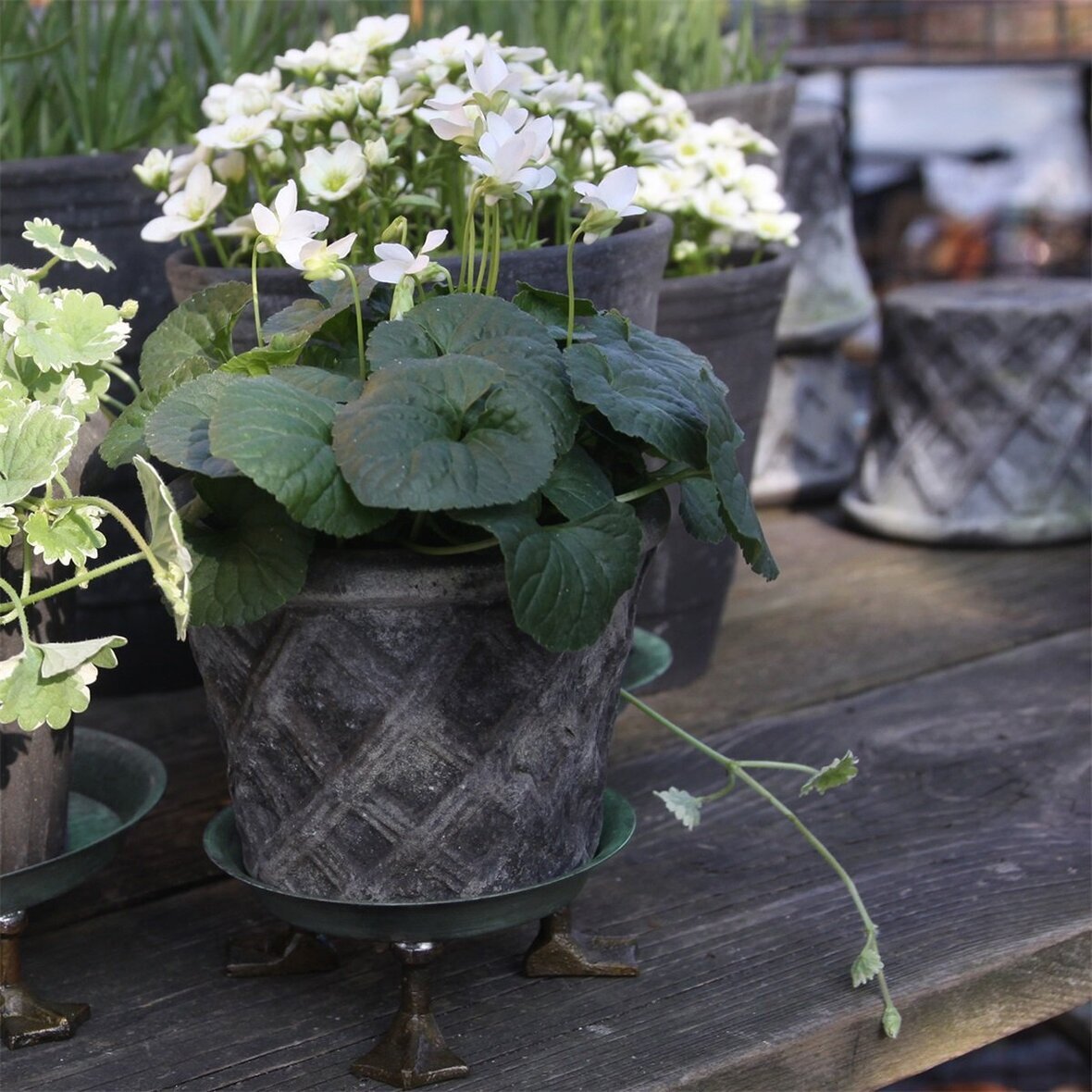 Fat som finns i 3 olika storlekar med dekorativa ankfötter, kan användas både till krukor & andra vackra ting.
