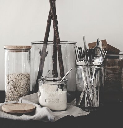 Glasburk som passar både som vas till blommor samt förvaring . Glasburken har texten 0,75 L ERNST. Läs mer