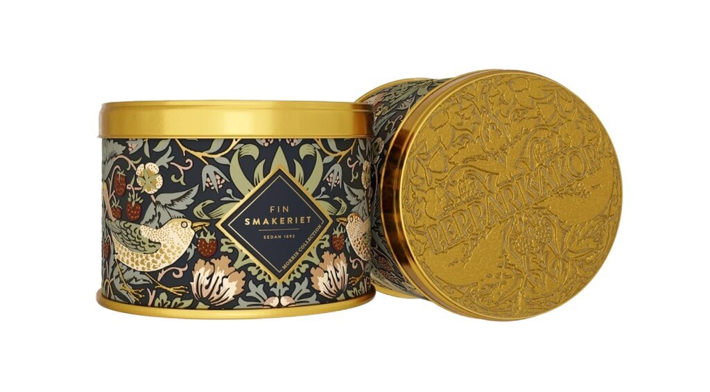 Ångbakade pepparkakor förpackade i en vacker plåtburk med mönster Strawberry Thief från William Morris. Läs mer