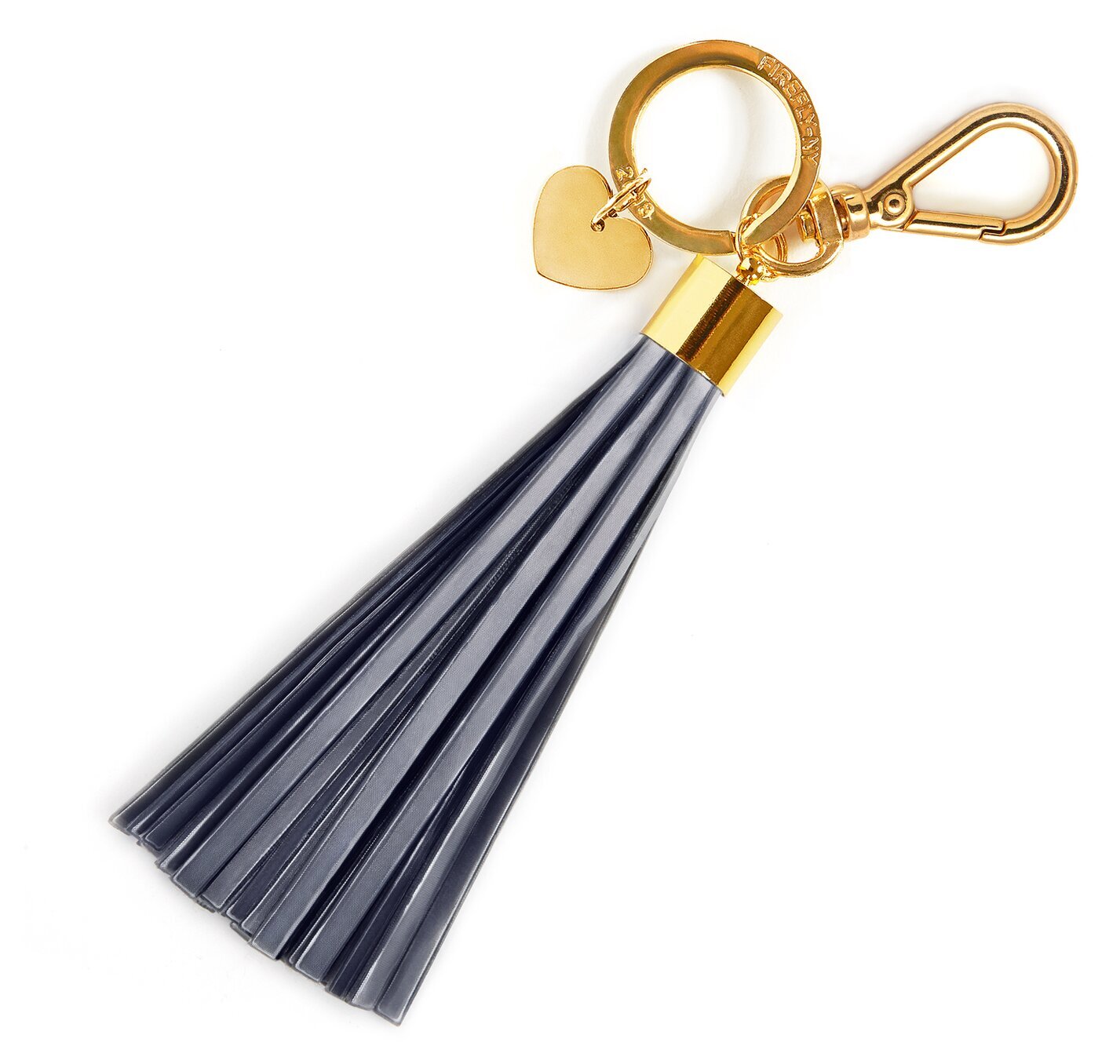 Reflextassel för alla fashionistas! Finns i många olika färgkombinationer och blir en extra glammig detalj på väskan, barnvagnen, nyckelknippan eller jackan. Denna tassel är lite tjockare än originalet med en stilren slät topp samt en berlock i form av ett hjärta.
