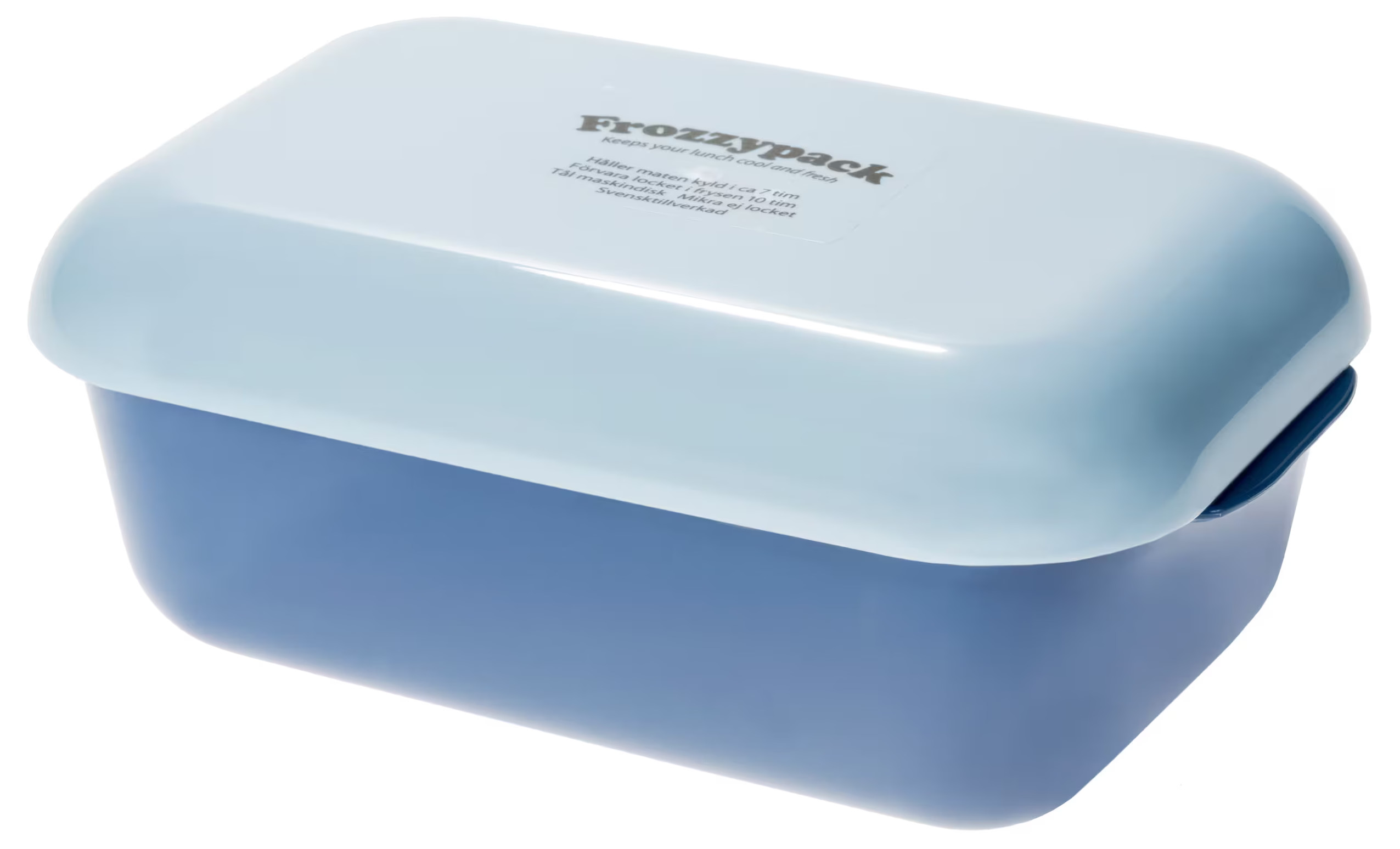 Frozzypack Sea Soft Blue från varumärket Frozzypack är en praktisk och stilren matlåda utformad för att hålla din mat kall och fräsch under längre perioder. Matlådan är rektangulär i sin form och kännetecknas av en harmonisk färgkombination som ger ett lugnt och fridfullt intryck. Lådan i sig har en mjuk blå färg, medan locket har en något ljusare, nästan pastellblå ton som kompletterar basens färg perfekt.