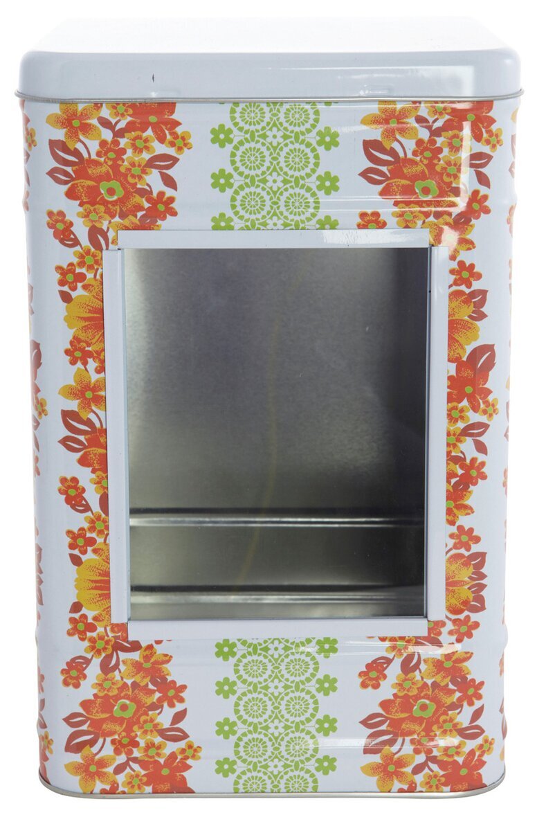 Förvaring av pasta, kakor, flingor, ris, flingor och liknande. Fönster på framsidan gör att man kan se innehållet. Mått: 16,5 x 16,5 x 25 cm.