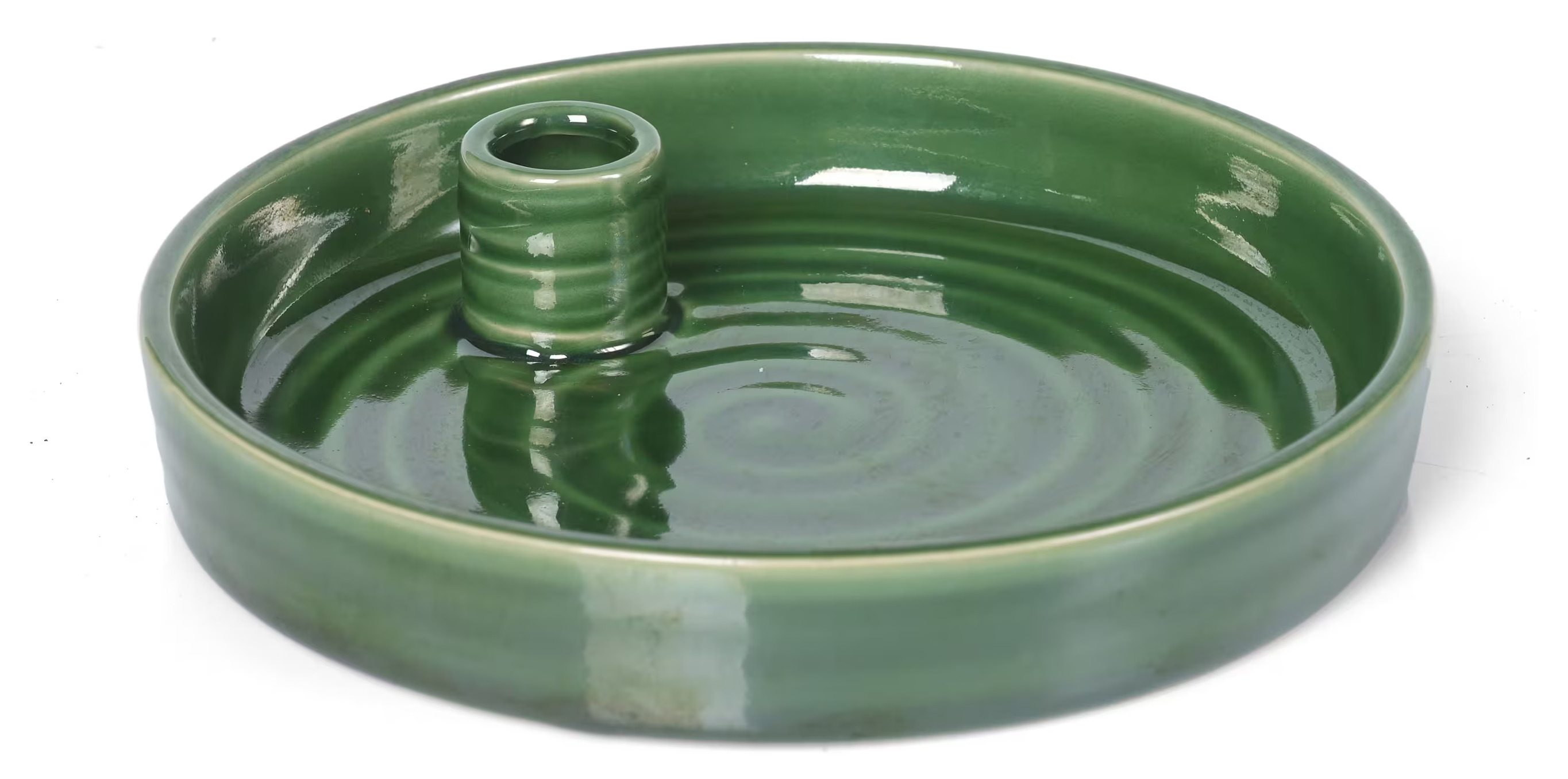 Vackert grönt ljusfat med plats för 1 styck kronljus, tillverkat i keramik. En fin detalj att dekorera med vackra ting efter säsong.
