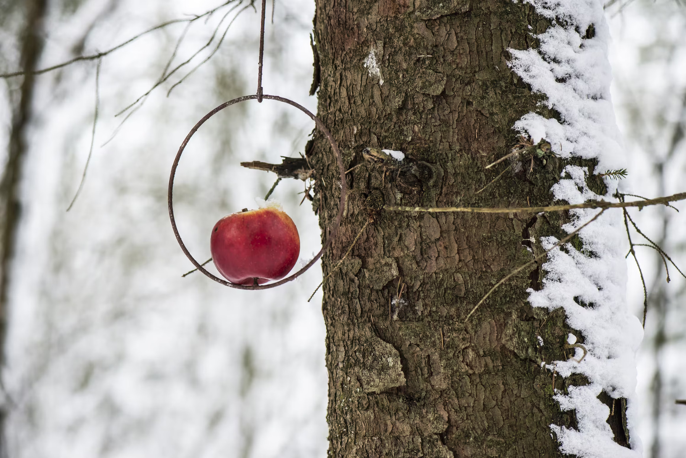 Metallring med spjut till äpplen & talgbollar, en fin dekoration samtidigt som fåglarna får mat. Läs mer