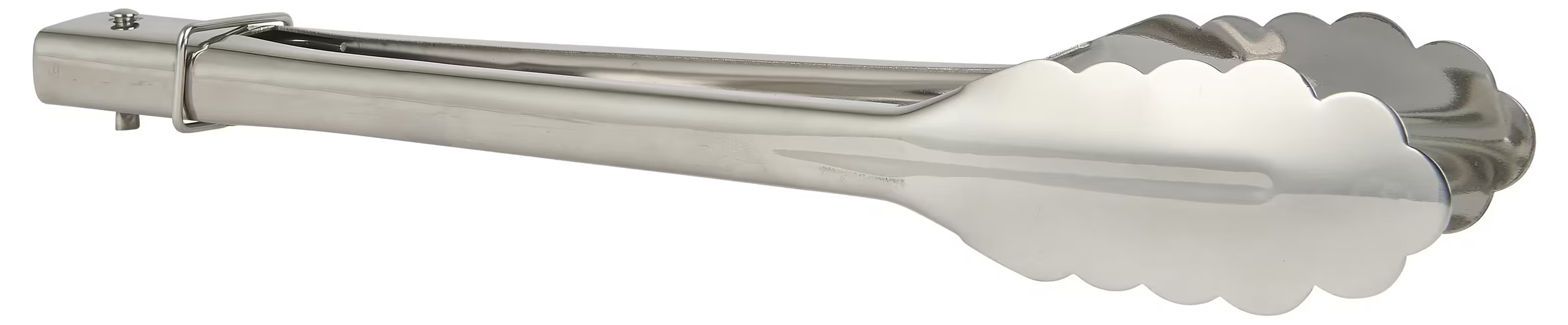 Tångens främre delar, det vill säga greppytorna, har en vågig och lätt tandad kant. Denna utformning gör det enklare att få ett stabilt grepp om både mat och redskap, vilket är extra fördelaktigt vid hantering av fet eller hal mat. Den vågiga kanten bidrar även till att maten stannar på plats och inte riskerar att glida omkring, vilket förbättrar precision och kontroll vid serveringen.