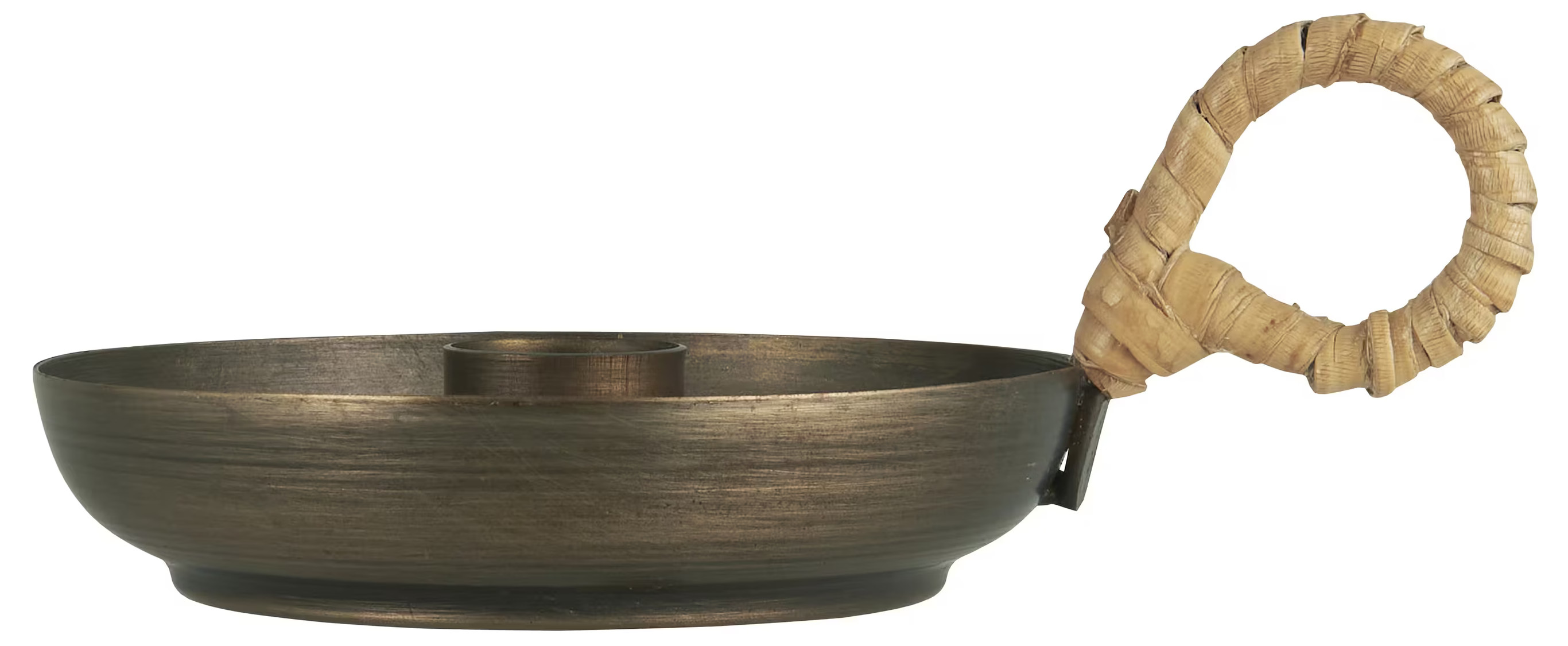 Med sina dimensioner är ljusstake Med Handtag från IB Laursen en kompakt men iögonfallande inredningsdetalj. Kombinationen av den mörkbruna metallfinshen och den naturliga bastlindningen på handtaget skapar en visuell harmoni som passar både i moderna och rustika miljöer.