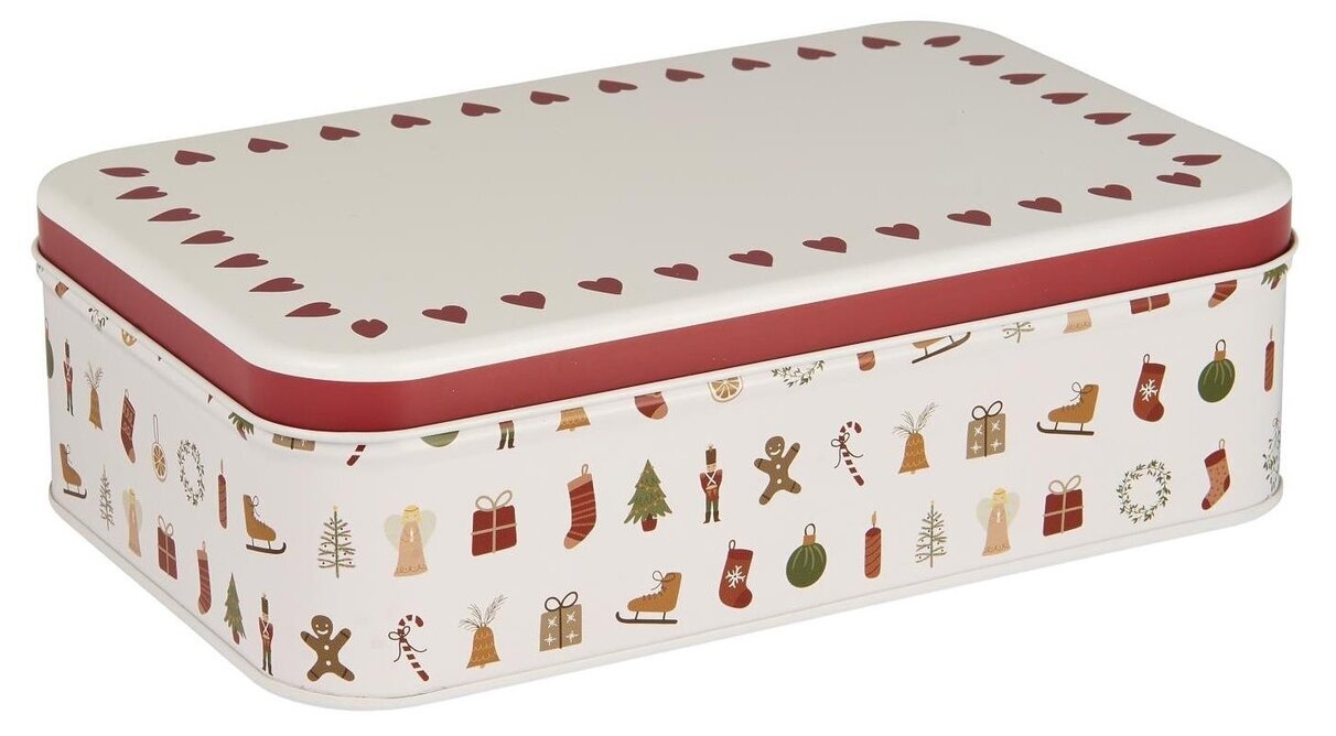 Dekorera hemmet och förvara dina julfavoriter i dessa charmiga plåtburkar med klassiskt julmönster. Perfekta för pepparkakor, knäck, kolor eller småkakor – och lika fina att ge bort som gåva fyllda med godsaker. Med sina hjärtan på locket och små juldetaljer runtom blir burkarna en stämningsfull del av juldukningen.