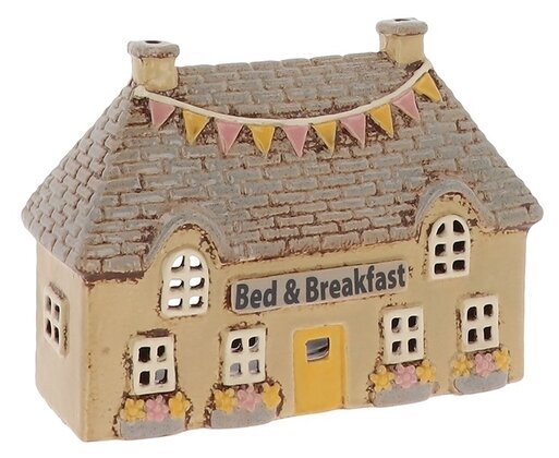 Skapa en mysig och inbjudande känsla med detta charmiga ljushus som föreställer ett klassiskt bed & breakfast. De fina detaljerna, blomlådorna och den dekorativa girlangen ger huset en varm och hemtrevlig karaktär.