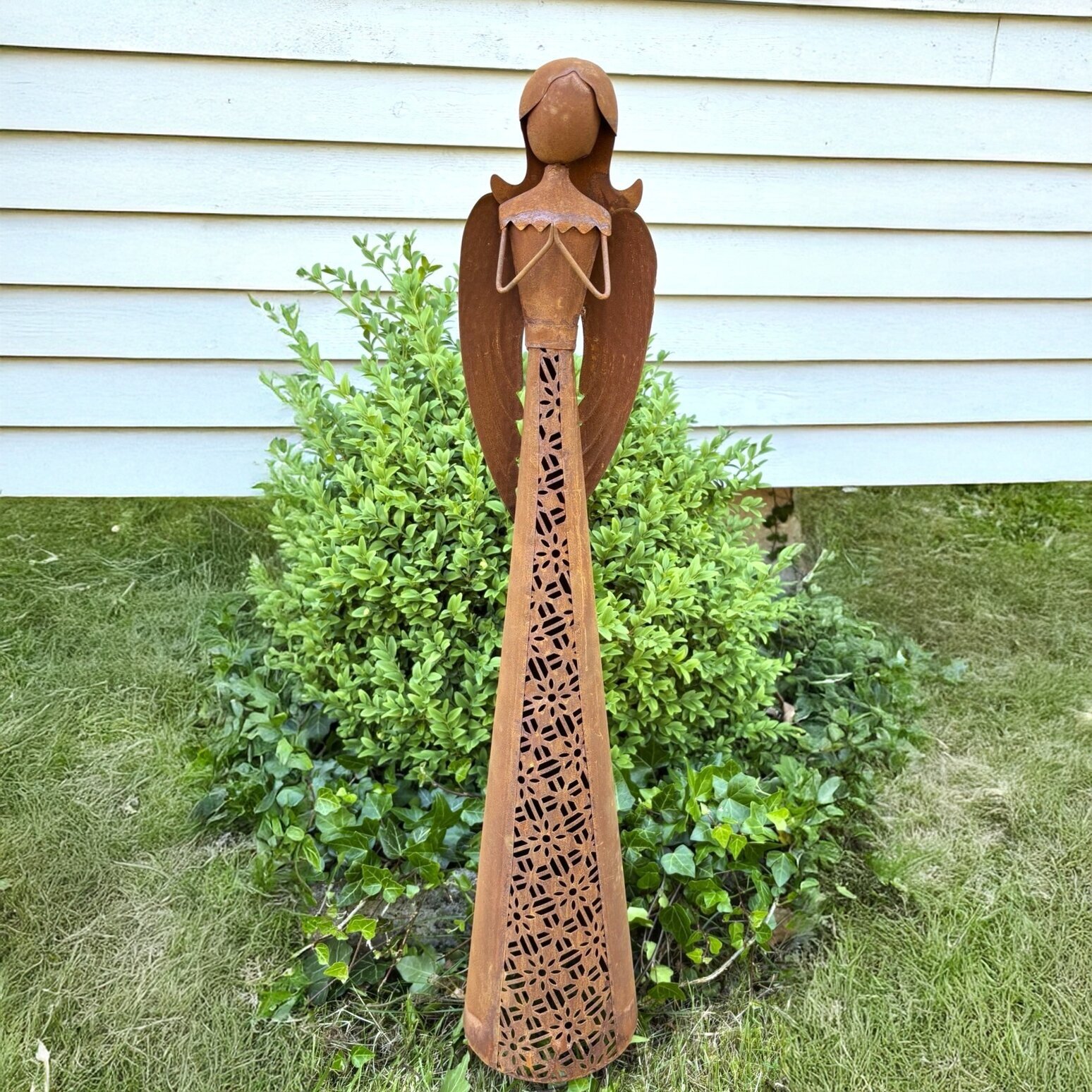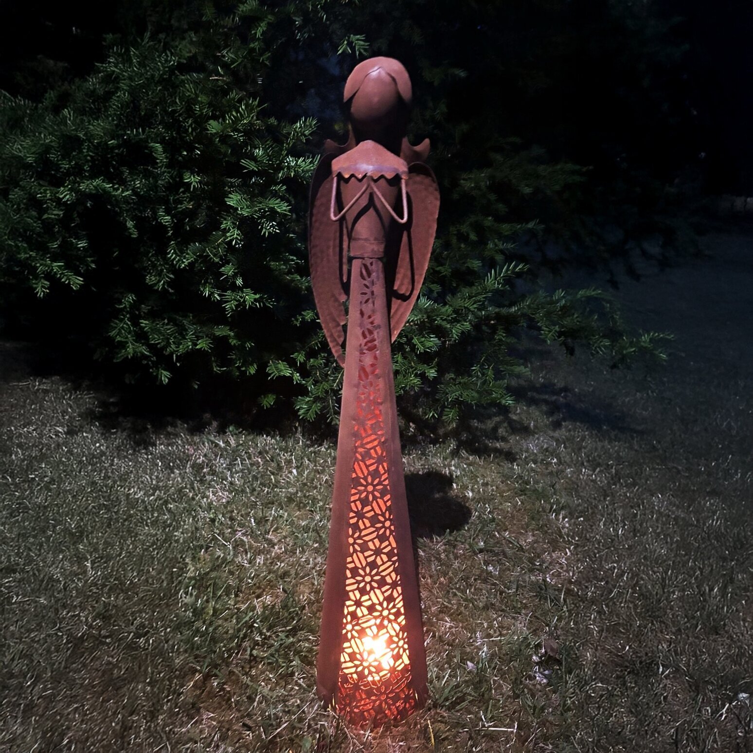 Stor ängel i rostig metall – med plats för värmeljus, från Lind Decoration. Läs mer
