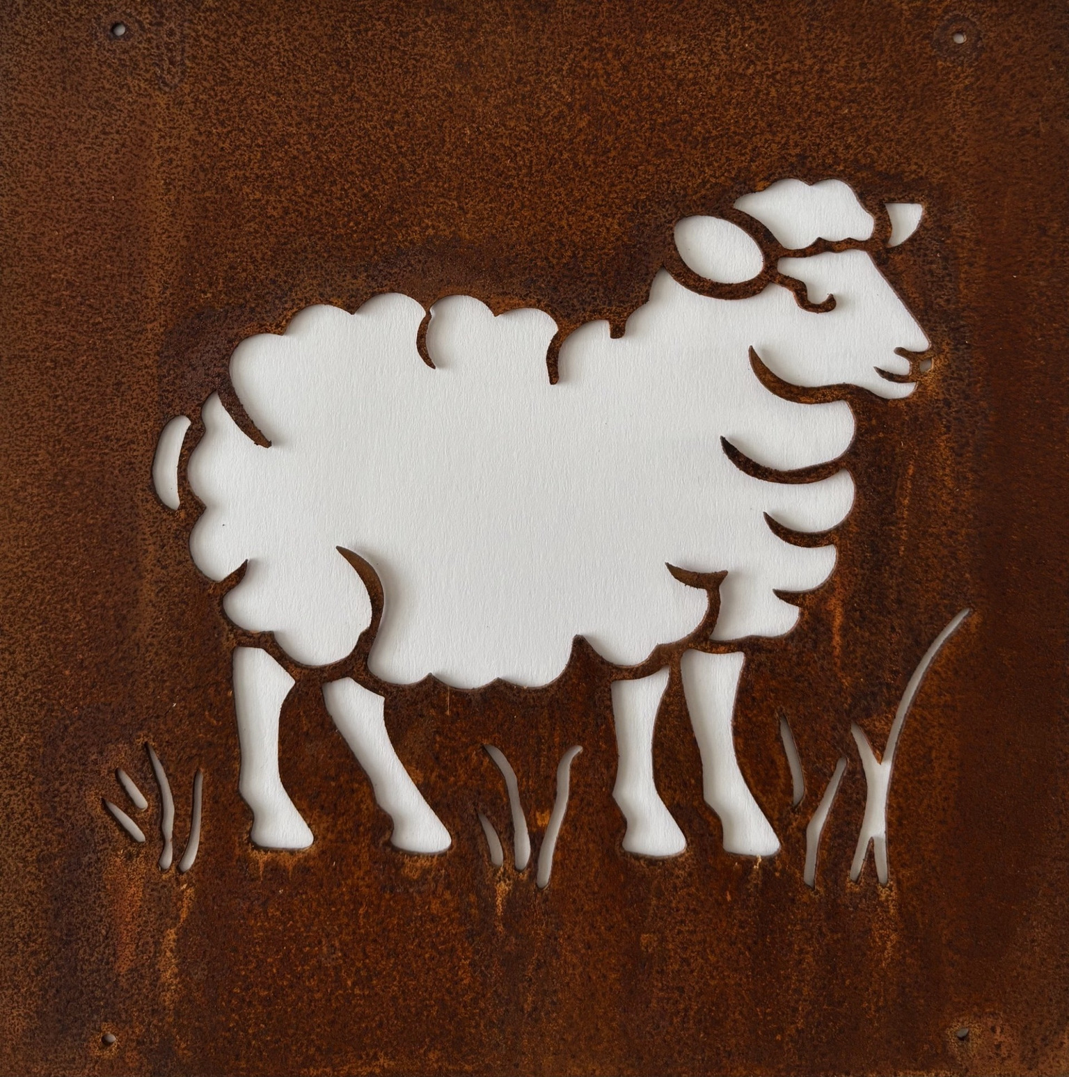 Dekorativ skylt i rostfinish som kan placeras med medföljande ståltråd på bl a armeringsnät. En fin detalj i trädgården. Passar till armeringsjärn storlek 15 x 15 cm.