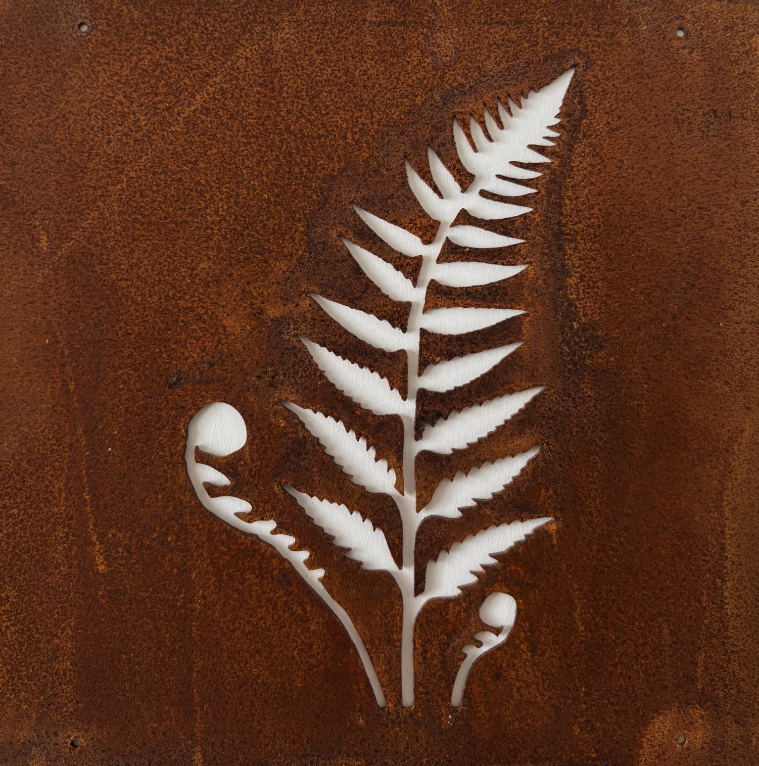 Dekorativ skylt i rostfinish som kan placeras med medföljande ståltråd på bl a armeringsnät. En fin detalj i trädgården. Passar till armeringsjärn storlek 15 x 15 cm.