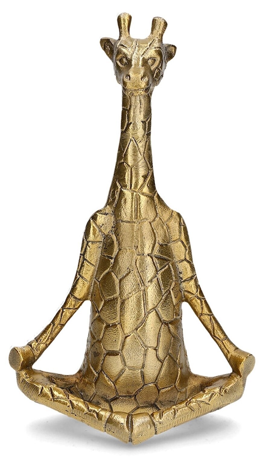 En charmig och lekfull dekoration i form av en giraff i en lugn yogaposition. Den gyllene finishen tillsammans med de fina detaljerna i mönstret ger figuren ett elegant och samtidigt humoristiskt uttryck.