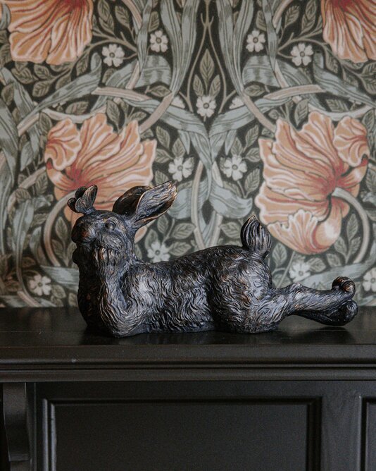 En charmig kanin med ett mjukt, avslappnat uttryck och vackert arbetade detaljer i pälsen. Den mörka tonen ger ett rustikt och elegant intryck som smälter fint in i både modern och mer klassisk inredning.