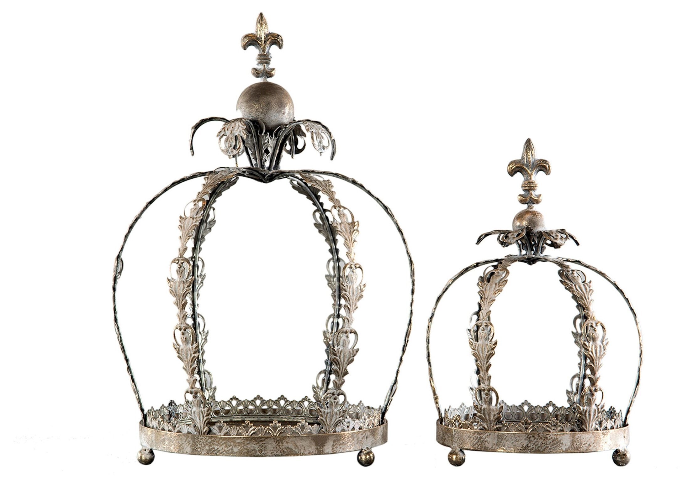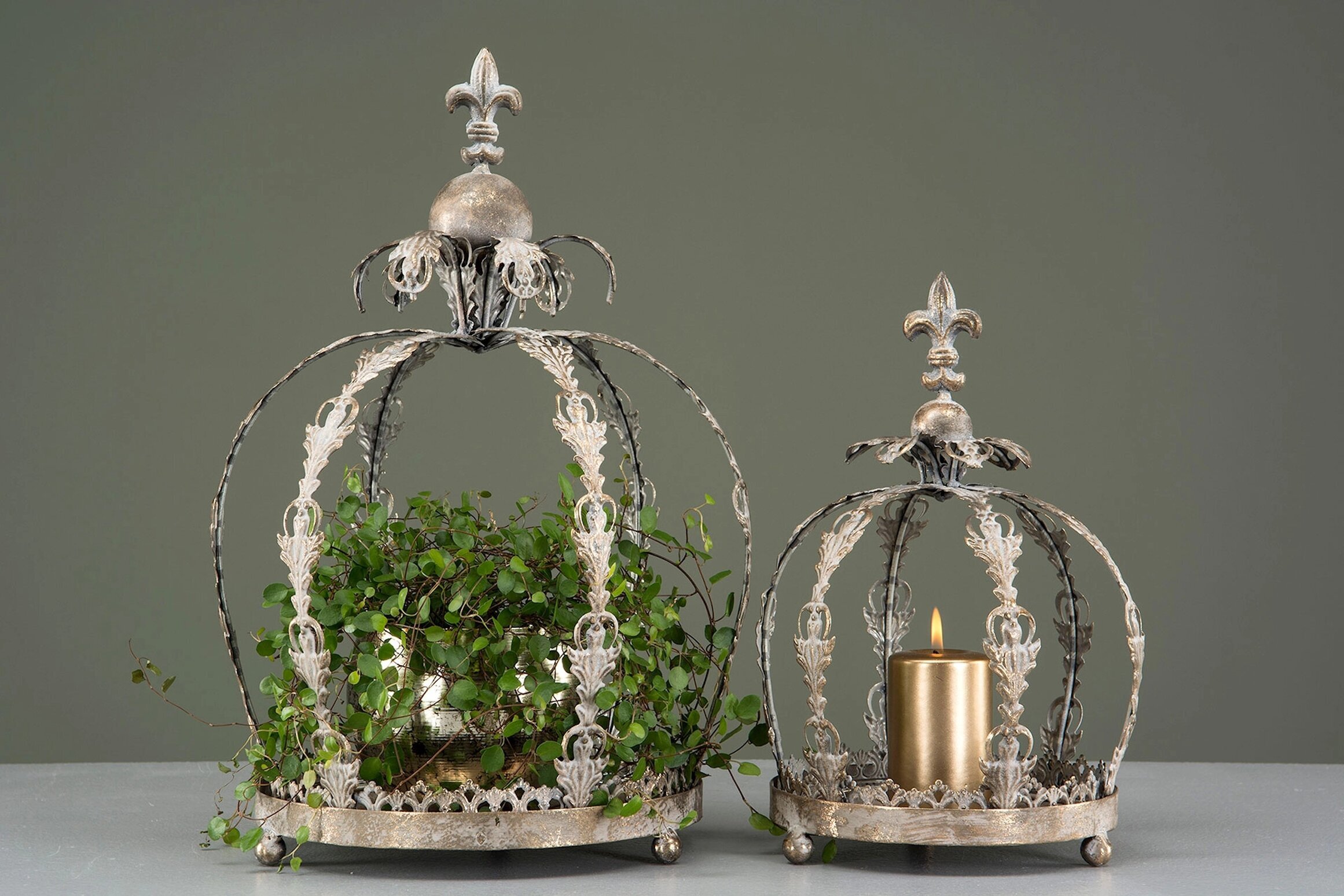 Ge ditt hem en känsla av kunglig elegans med dessa vackra metallkronor i antik stil. De är perfekta som dekorationsdetaljer året runt – fyll dem med levande ljus, gröna växter eller säsongens dekorationer för att skapa en stämningsfull inredning.
