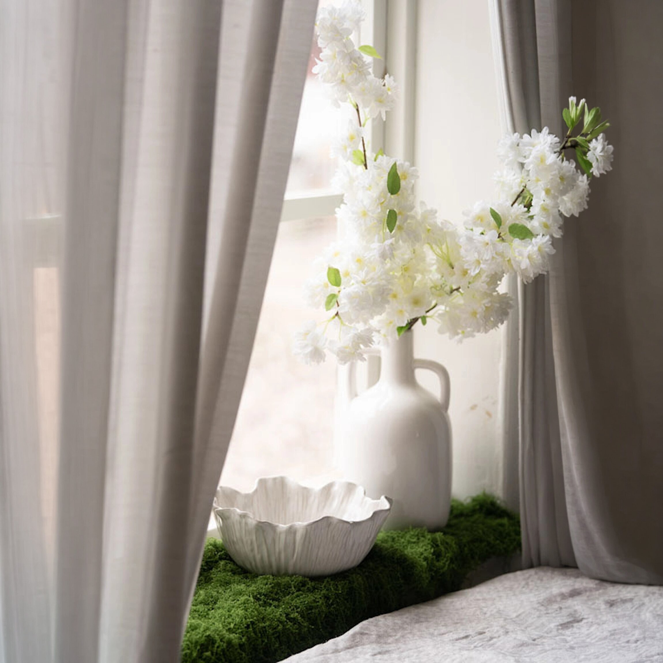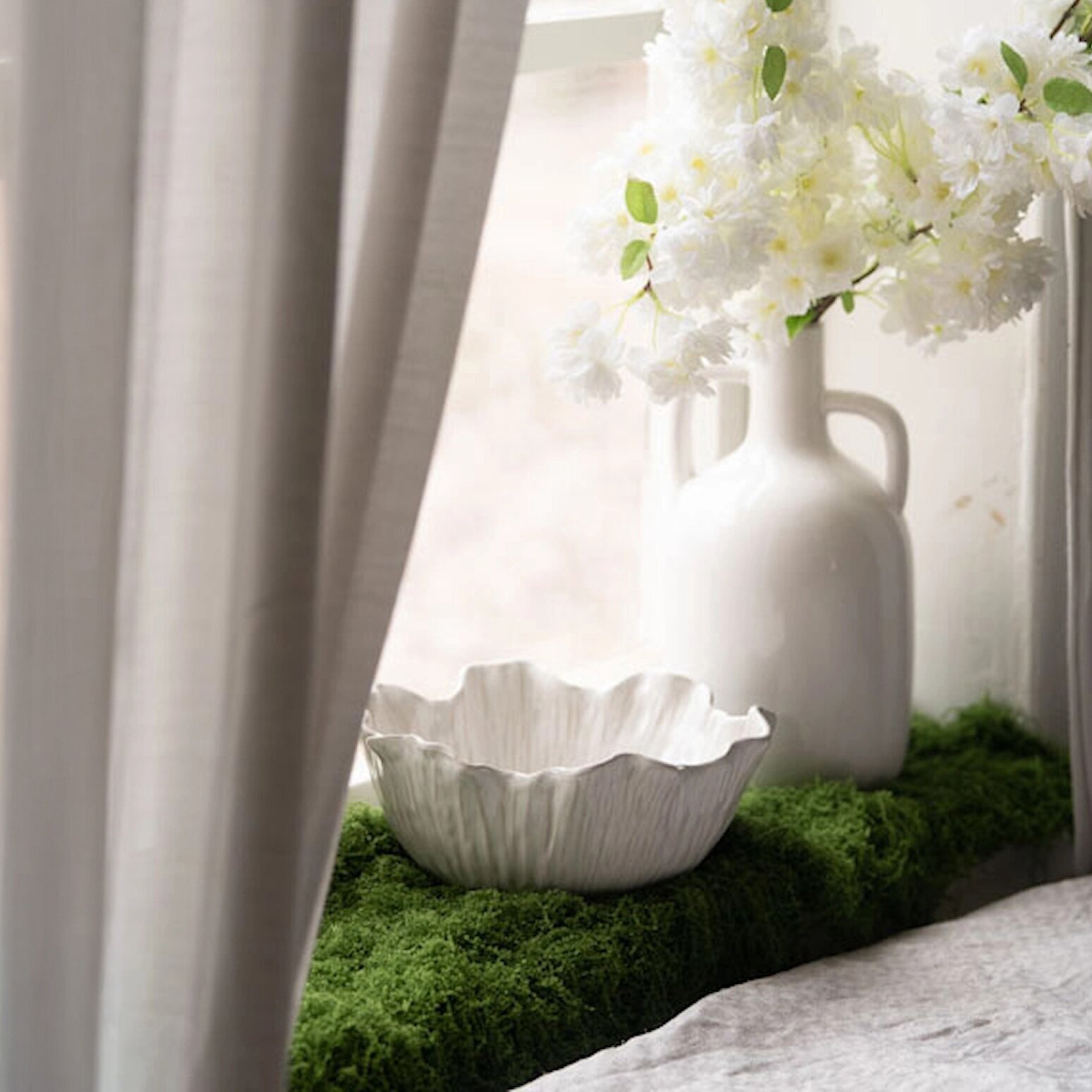 En elegant skål i keramik med mjukt böljande kant och vacker, strukturerad yta som påminner om blomblad. Den ljusa tonen ger ett harmoniskt och stilrent uttryck som passar i både klassiska och moderna miljöer.