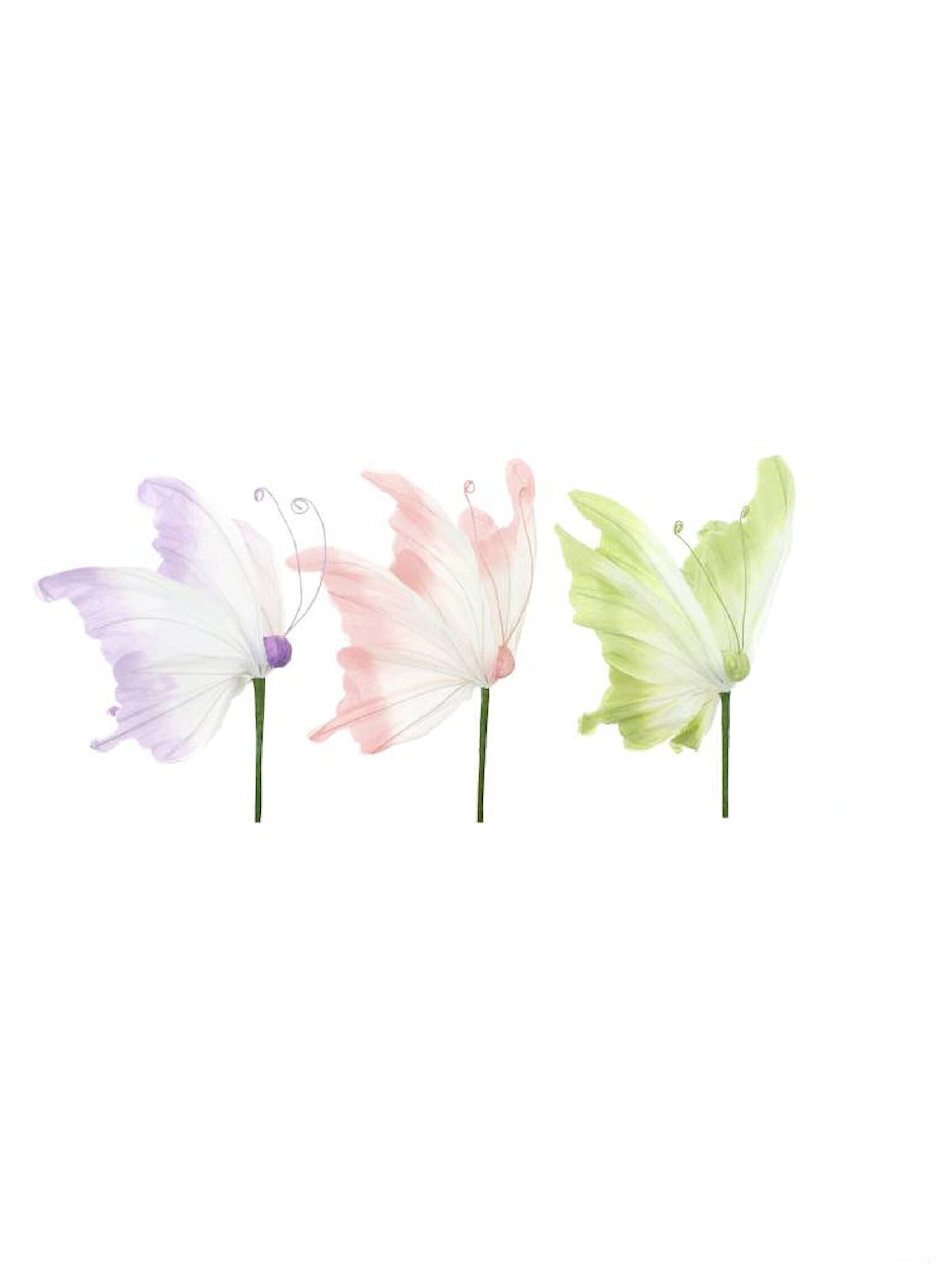 Dekorativa fjärilar i mjuka pastelltoner som ger en lätt och vårig känsla till dina arrangemang. Perfekta att sticka ner i en bukett, kruka eller ett påskris för att skapa höjd, rörelse och ett lekfullt uttryck.
