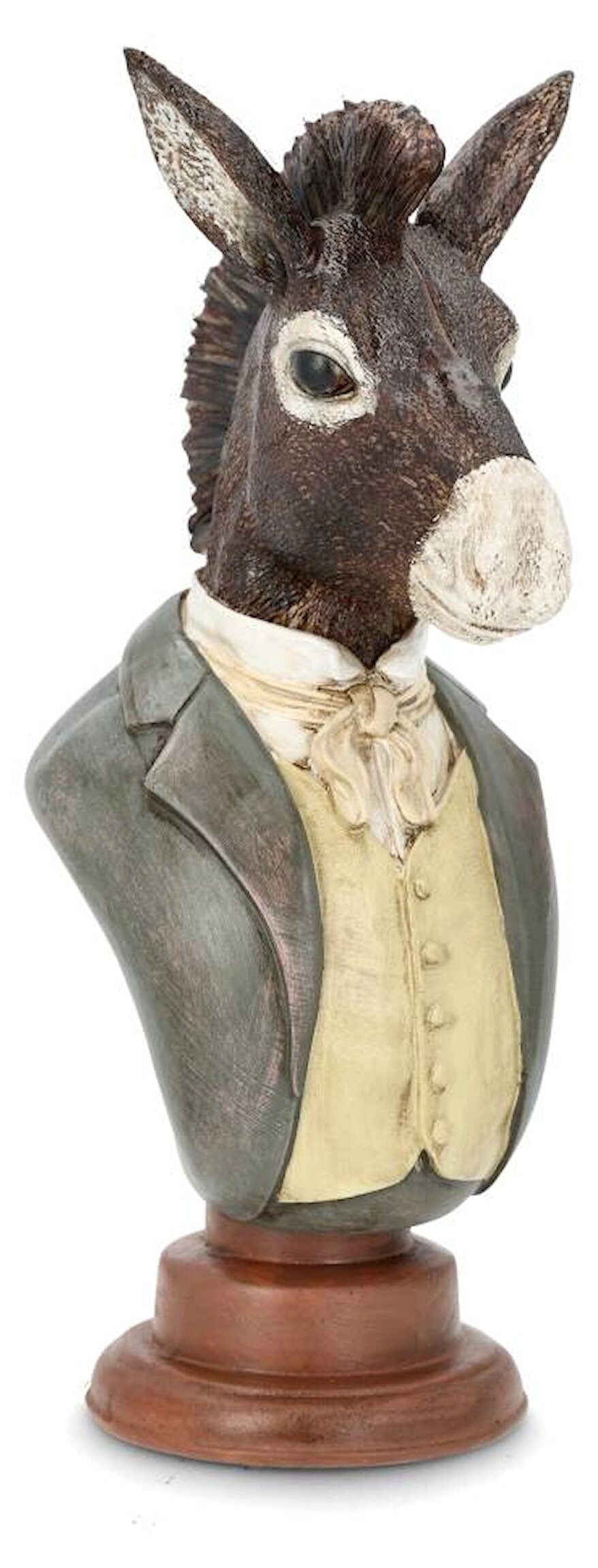 En unik och karaktärsfull åsnebyst som kombinerar humor med klassisk elegans. Med sin stilfulla kavaj, väst och scarf får figuren ett tidlöst uttryck som passar perfekt i ett hem där detaljerna får ta plats.