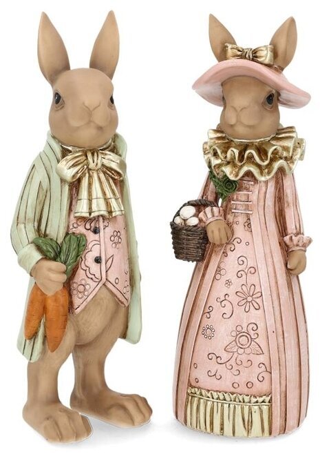 Ett charmigt dekorationspar som skapar en varm och lekfull påskkänsla i hemmet. Herr och fru kanin är klädda i mjuka pastelltoner med vackra detaljer som ger dem ett tidlöst och elegant uttryck.