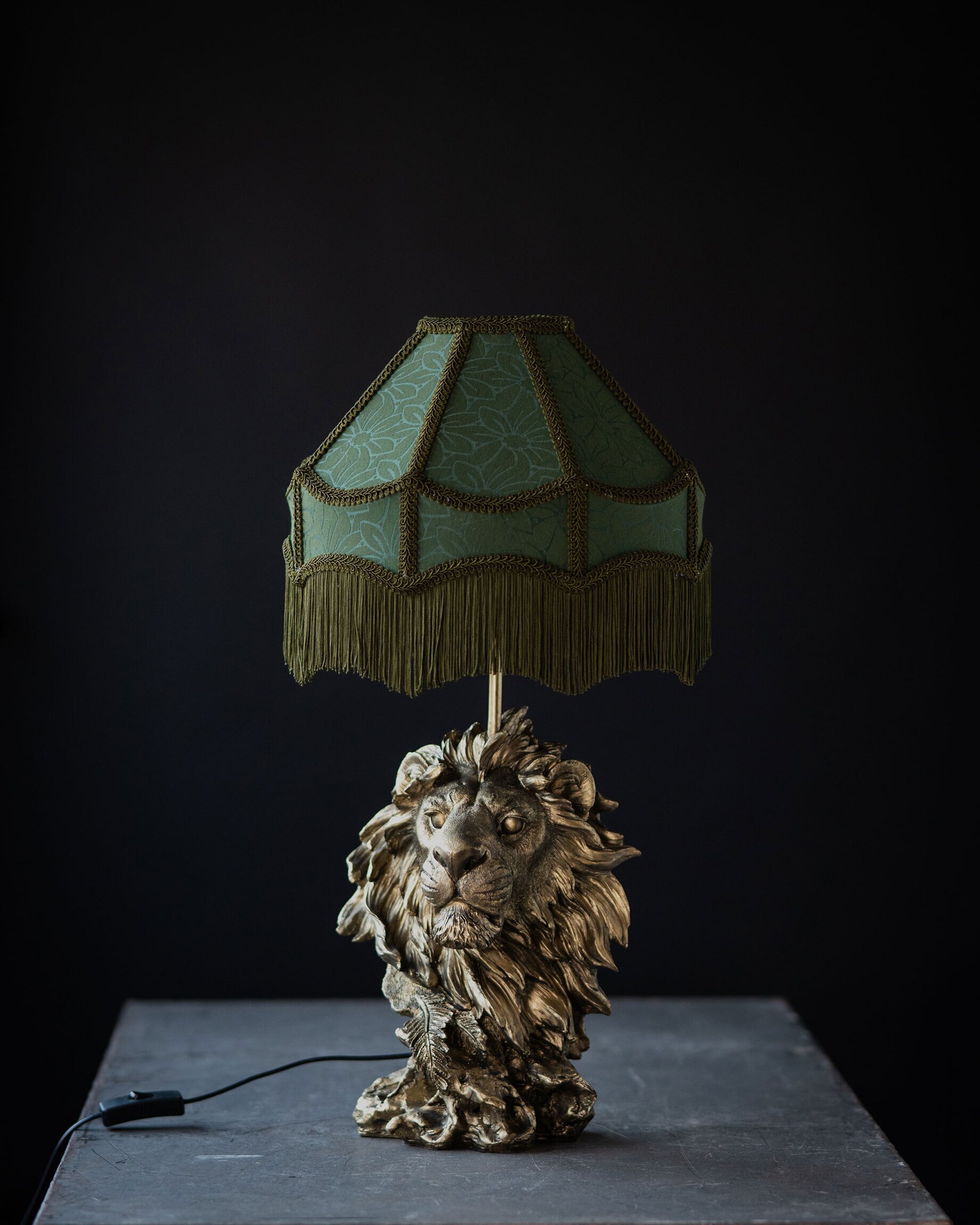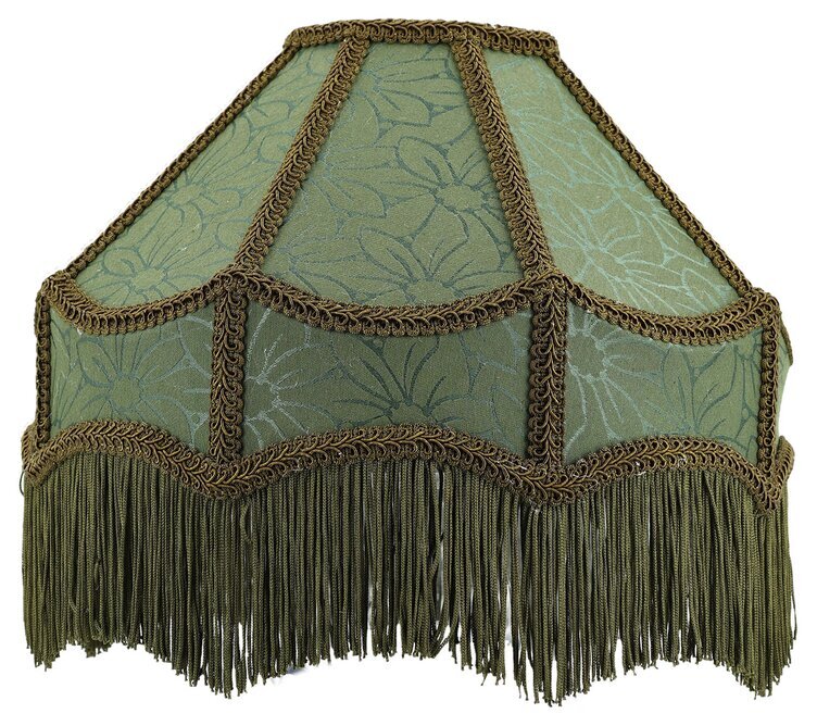 Ge ditt hem en dos dramatik och vintagekänsla med denna dekorativa lampskärm i en vacker grön nyans med fransar. De vackra textilpartierna, detaljerade kantbanden och den svängda formen ger ett elegant uttryck som drar blickarna till sig – oavsett om den används som traditionell skärm eller som fristående taklampa med upphängning.