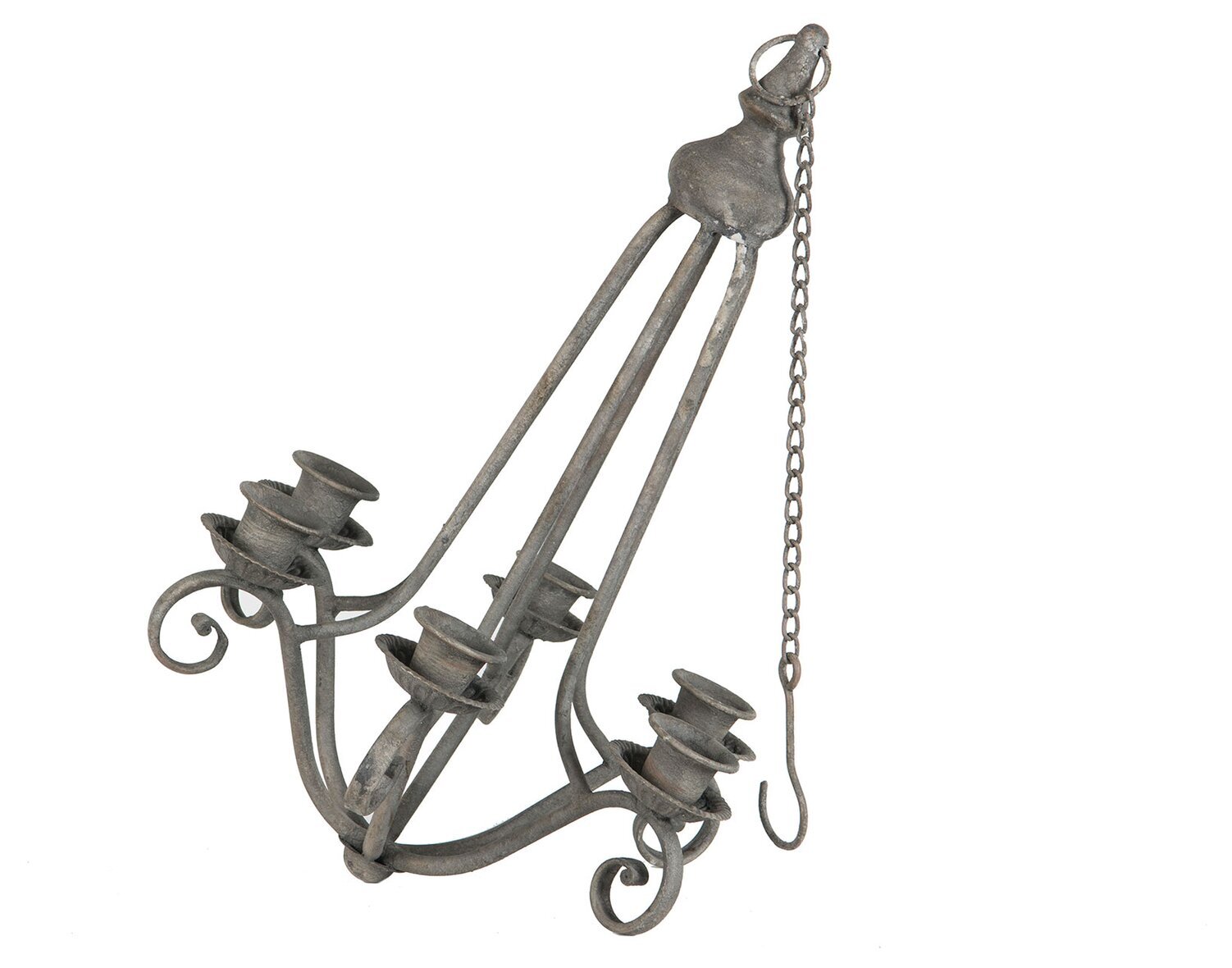 En klassisk ljuskrona i smide med plats för sex kronljus. Den rustika designen med mjukt svängda armar och antik finish gör den till ett vackert inslag i hemmet. Läs mer