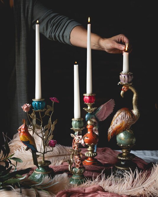 Ljusstaken passar lika fint ensam som tillsammans med andra djurmotiv och skapar en stämningsfull helhet på bordet, i fönstret eller på en hylla. När ljuset tänds framhävs detaljerna och ger rummet ett varmt och inbjudande sken.