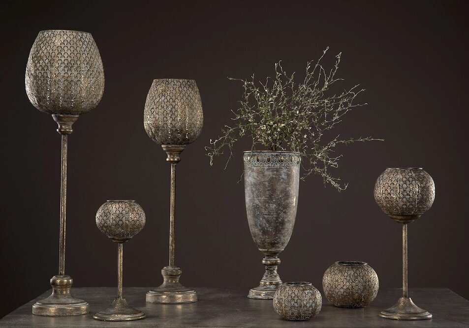 Skapa stämning i hemmet med denna eleganta ljuslykta på fot. Den vackra metallfinishen och det mönstrade glaset sprider ett varmt och levande sken som förhöjer både vardag och fest. Perfekt att placera ensam som blickfång eller tillsammans med andra lyktor i olika höjder för en stilfull helhet.