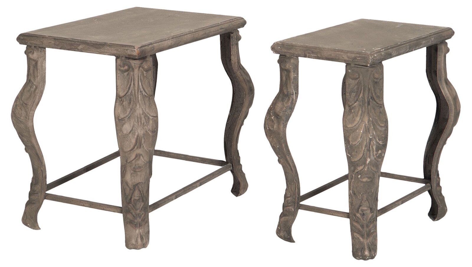 Charmigt sidobord med rustik patina och vackert snidade ben. Bordet passar lika bra som en dekorativ detalj i uterummet som i vardagsrummet – perfekt för ljusstakar, böcker eller en kopp kaffe. Den antikbruna finishen och de skulpterade formerna ger en tidlös känsla som lyfter vilken miljö som helst.
